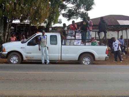 Söndagen var ännu en dag med hårt jobb mot Ebolan för teamet. Igår var det Mboo Statutory District i Margibi som fick stöd. Mera Klorin, tvål, ris och matolja. Det är föräldralösa barn, det är familjer i 21-dagars karantän och många många andra i drabbade distrikt som får stödet. Hoppas det känns som bra effekt för insatta medel på bankgirot 876-6834. 500:- ger t ex 80 flaskor klorin som späds ut till enkel effektiv smittstoppande handtvätt.