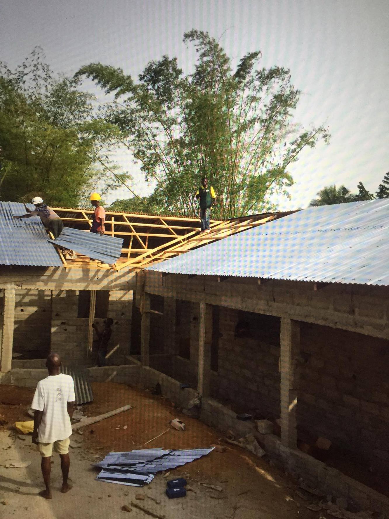 I Mother Artis (Grand Bassa) har vi haft förseningar. Men taket sätts nu på och arbetet går framåt. Om det blir 360 skolplatser eller 480 återstår att se.