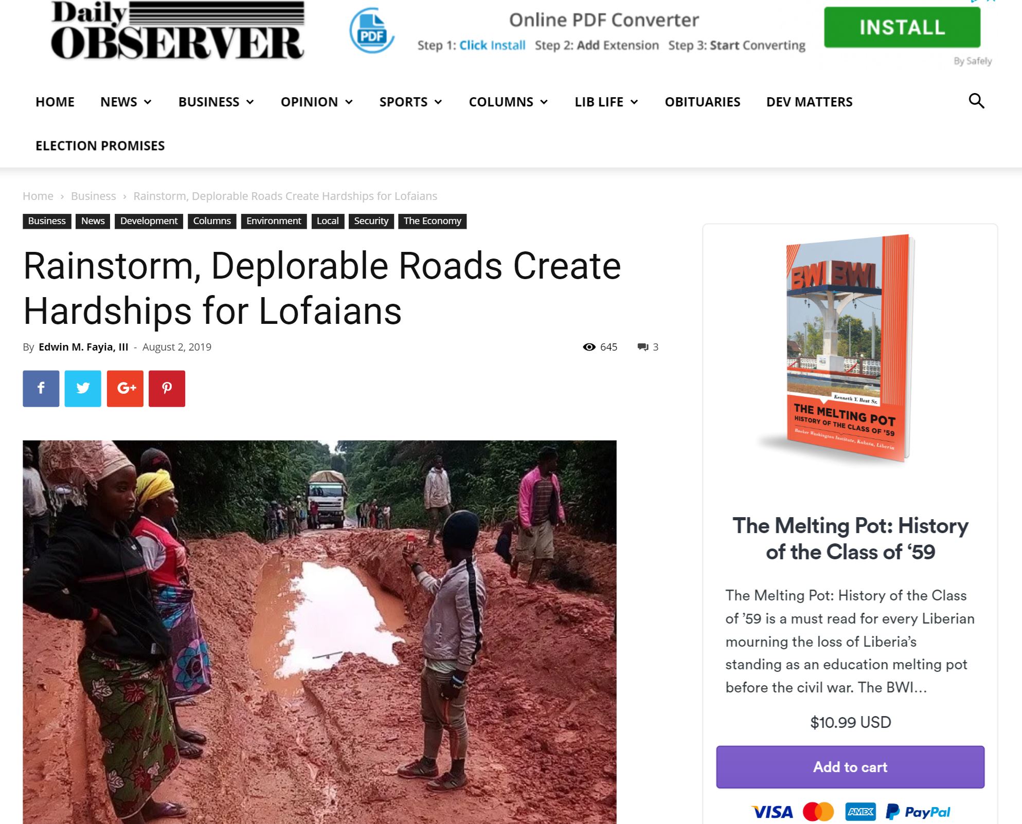 Bilden nedan är från en artikel i liberiansk media, efter att huvudvägen till Lofa regnat sönder och tropiska stormar drabbat byar i Foya, Lofa. Läs hela artikeln här.