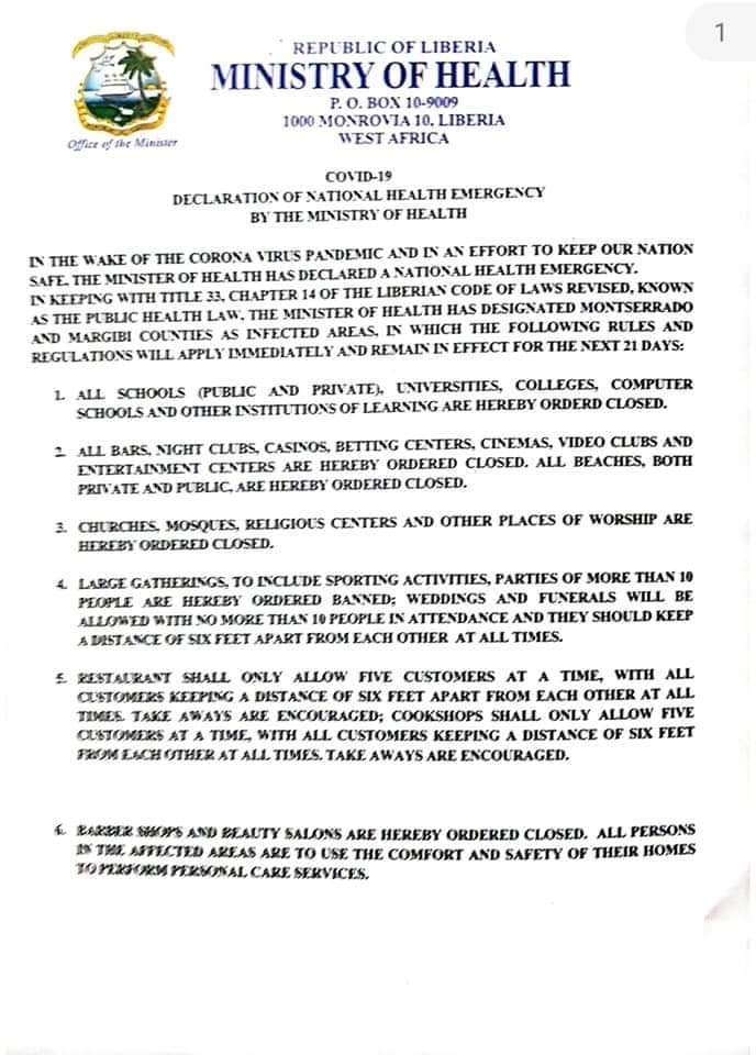 Oerhört tragiska tider. Skolorna i hela Liberia har stängt pga risker kring COVID-19. Hälsoministeriet har igår 21:a mars beordrat stängning av det mesta i landet, från kyrkor till frisörer och t o m beacher. Vissa lokaler får ha 5 pers per gång etc. Det får oerhörda konsekvenser på det påfrestade tappra folket och den redan så svaga ekonomin, som ett av världens fattigaste länder.