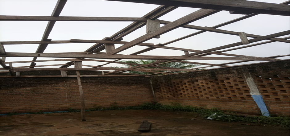 Halva taket tagit av storm. Inte kunnat användas på 1 år, yngre klasserna inte haft undervisning förra året
