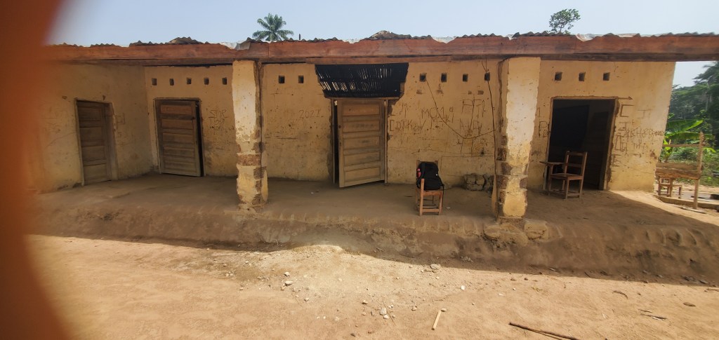 Här är till exempel skolan i Gbegbedu som behöver göras till en dräglig fungerande miljö.