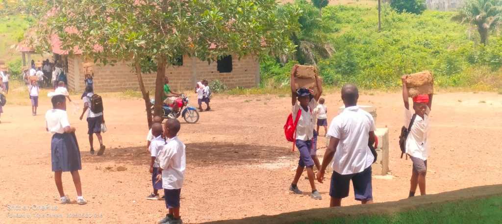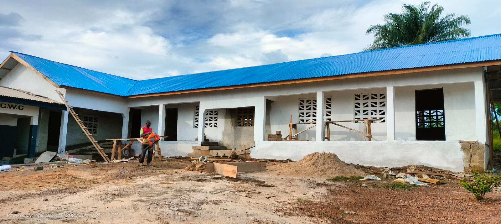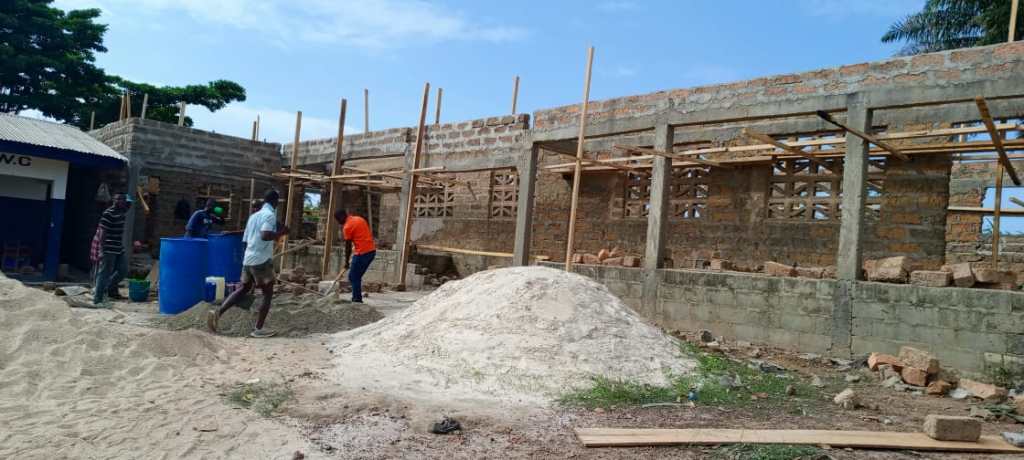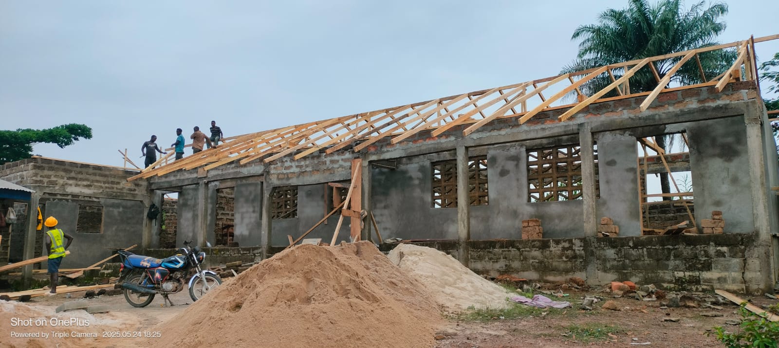 Det jobbades flitigt under maj-juni 2025! Vi får löpande bilder och film skickade under projektet. Alla hjälper till. Elever bär teglet som byn skapat tillsammans. Det är alltid fantastiskt att se hur en ny skolbyggnad byggs upp tillsammans ! Spana in bilderna!