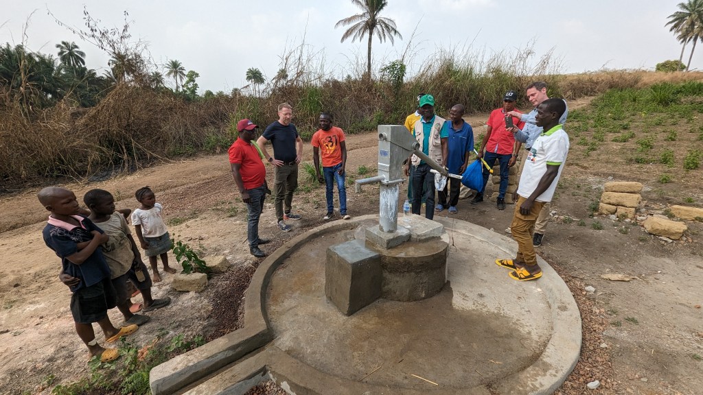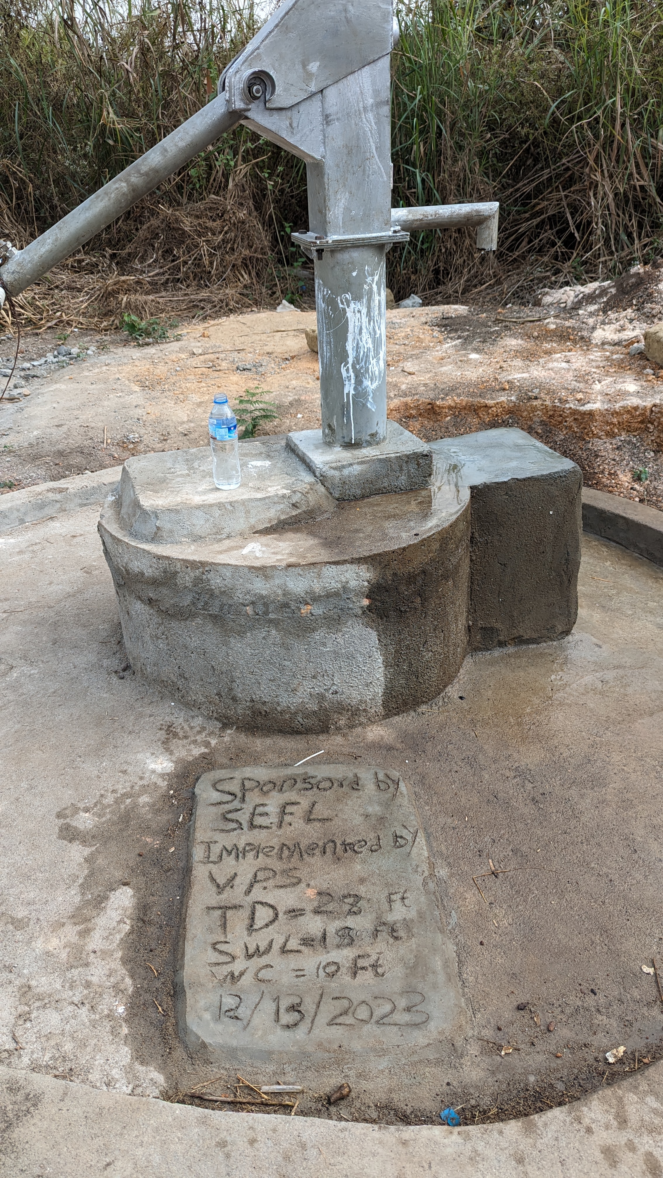 Vattenbrunnen är på plats. Här fotograferad vid ett besök i januari 2024. Skolan var ledig den här dagen, så det var lite glesare än vanligt vid brunnen och i skolan.