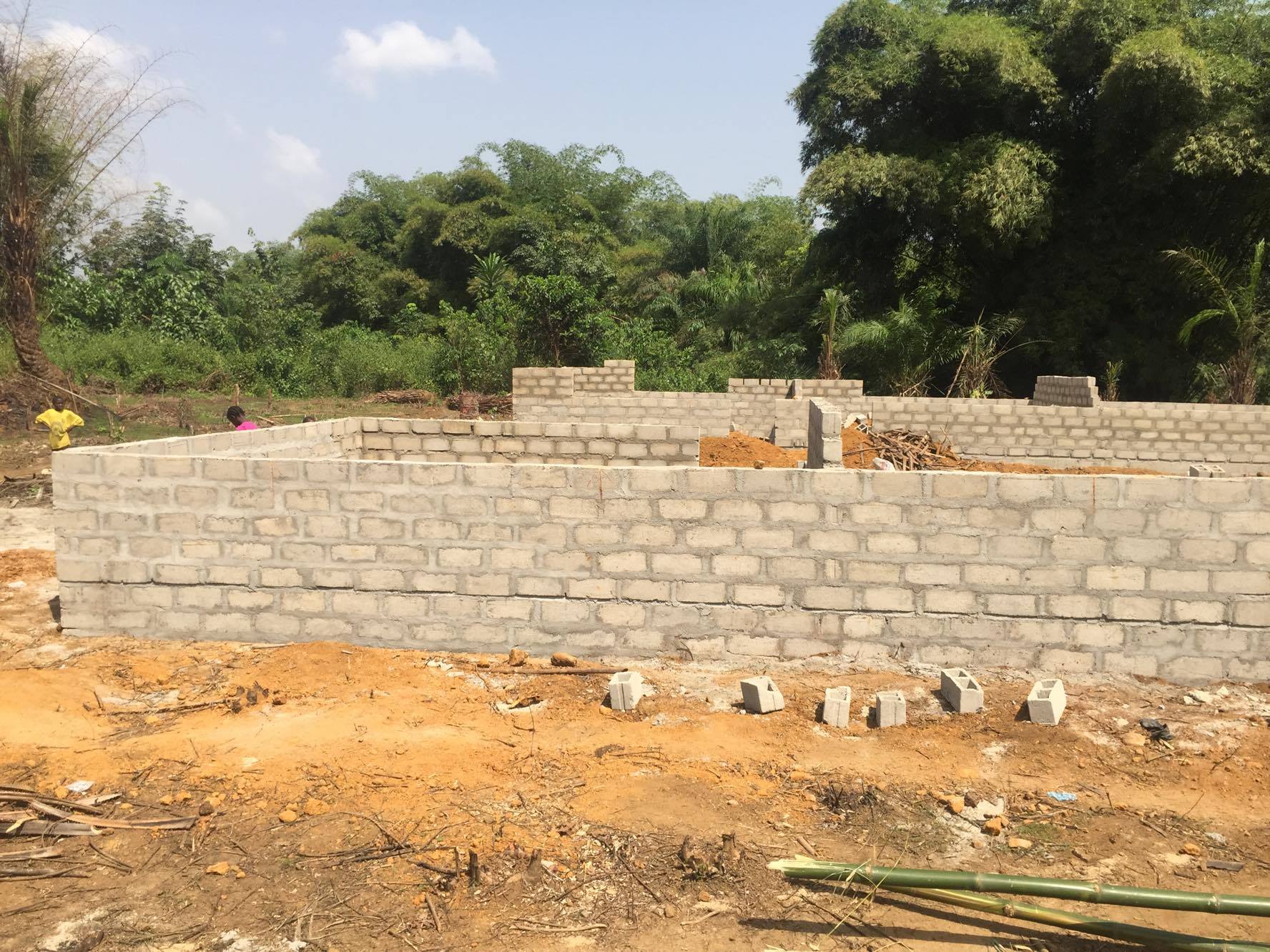Efter besöket i Maj 2014 bestämde sig Utbildningsfonden att satsa på att bygga en skola här. Behoven är extrema på många ställen – här var det ännu större. Få elever gick i skolan och de rituella traditionernas inslag var stora lokalt. Med en skola – som man är stolt att gå i – så minskar det problemet. Nu byggs en skola med sex klassrum. Så här ser det ut i början av bygget i slutet ac November 2015.