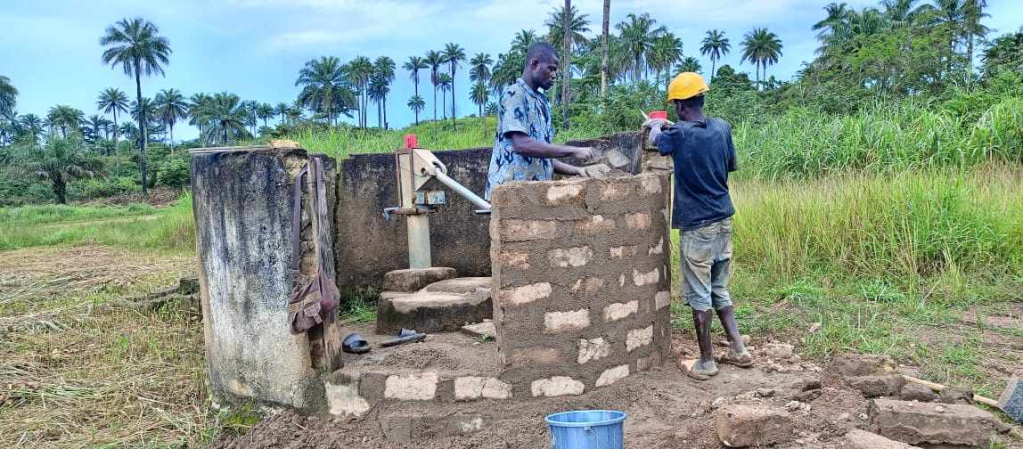 Och brunnen lagas, både pumpen och miljön runt som skyddar vattenkällan.