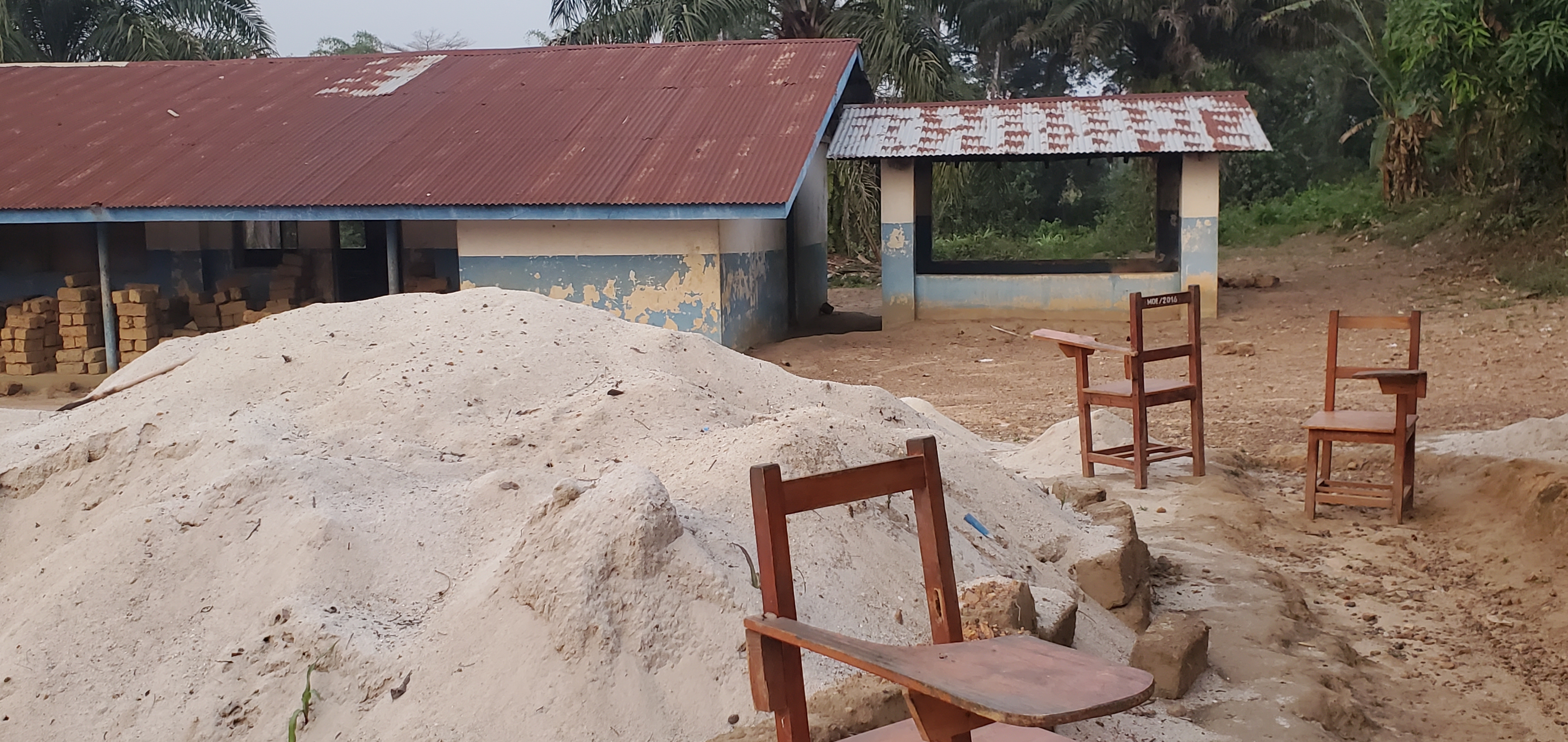 Vissa delar av den här skolan har lokaler som inte är funktionella. Föräldrar blir mindre benägna att låta eleverna gå i skolan. Eleverna är inte lätta att motivera heller. Med läckande tak under regnperioden går det ofta inte ens att ha skola. Det blir en dålig spiral som en vettig skolmiljö kan ändra på.