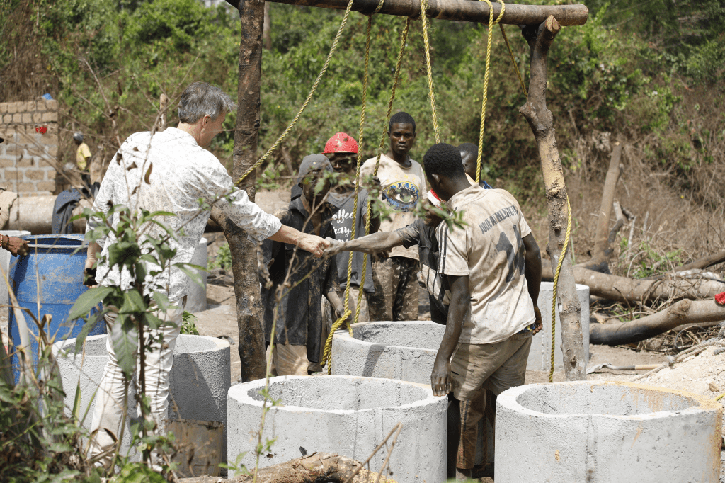 30:e januari 2024 besökte vi siten där både skolan och brunnen hade startats upp med att byggas. Kvinnan på bilden berättade att projekten är största som hänt byn i hennes livstid. Som alltid hjälper alla i byn till