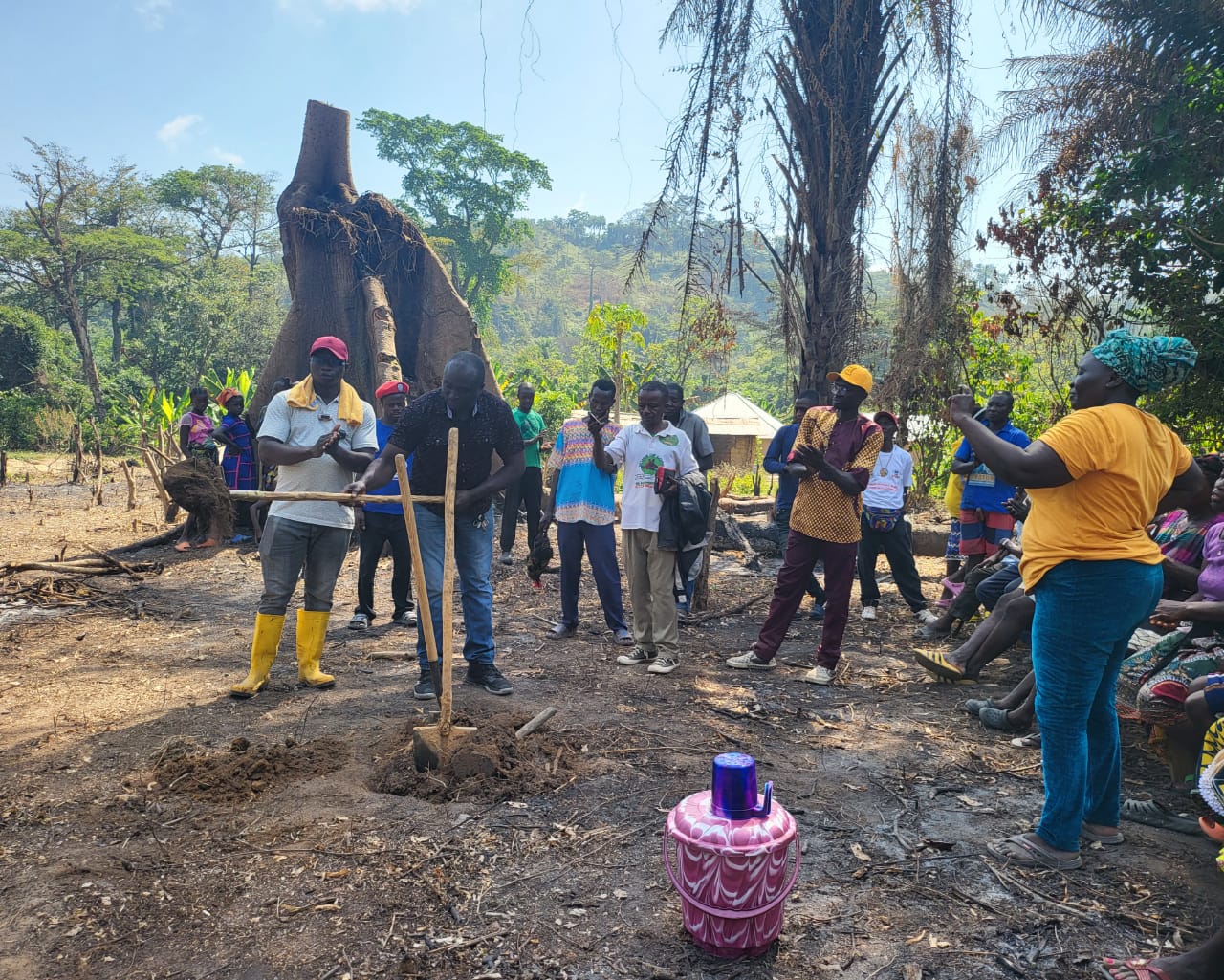 Marken är rensad av byns invånare och nu kan första spadtaget tas. ”DOE’S office representative Mr. Marcus Kutuacquoi takes the lead in groundbreaking ceremony”